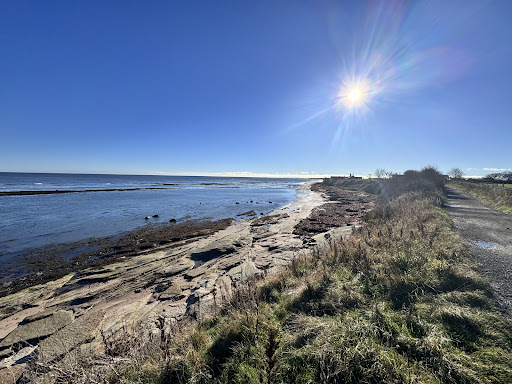 Beautiful beach and great for dog walking. Two issues: there is what appears to be a sewage outfall at the southerly point towards Alnmouth and the excellent pub only allows access to dogs on the outside terrace...