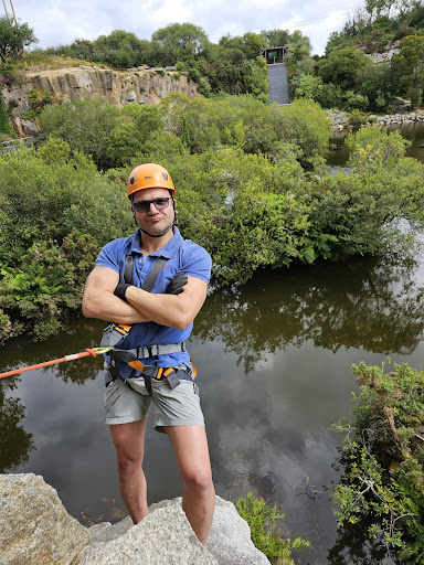 I can't recommend this place enough. I'd booked both courses for my 12 year old son and myself to do as a last bit of fun before school starts tomorrow and we weren't disappointed!! Although we had first morning nerves (more myself not my son) we arrived bright and early ready for our adventure. We were met by our instructor Harry who was really chipper. The other members of our team arrived and then we were off. After short introduction getting to know people we were putting on our harnesses and hard hats. Harry was brilliant helping and making sure they were on properly. We then had a short test of how to use the harness clips and how they lock onto the wire. Very simple to use yet extremely safe too! Afterwards we went down to the first quarry. Harry was extremely reassuring and so great at encouraging you even when you feel like giving up. He follows you on this course so is right by, which helps with the nerves! You gradually climb higher until you get to a wire bridge. Nerve wracking but once you do it, you do get a buzz! After a short break we got onto the big quarry and there's such a difference! You start down low and zig zag up the left side of the quarry. There are some tricky bits to and the course really pushes you and if like me you realise you need to be fitter! But it's such a really good activity and when you get to the top it's really worth it for the view. Even in the pouring rain it's beautiful and you'll see small frogs on the side of the quarry! Once at the top you'll get to the zip wire. This was scary (for me!) But once again with Harry as the wonderful instructor and the encouragement of the group I managed to do it! After all that physical activity ( I think a couple of hours) there's a wonderful cafe there serving up breakfasts to sandwiches and as you've done all that exercise, I think you should definitely try out one of their many cakes on offer as they were delicious!! In all, definitely push through any nerves you've got. You'll be in fantastic, reassuring hands of the instructors who won't let anything happen to you. Thank you to Harry for helping me have the confidence...