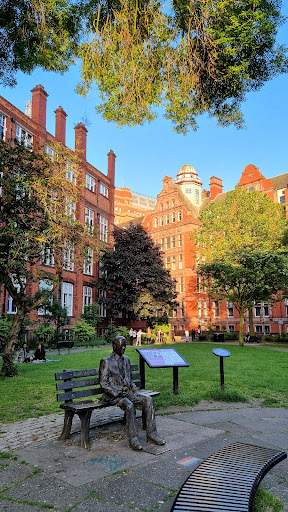 The statue itself, a bronze figure seated on a bench, is an eye-catching depiction of Turing, subtly capturing his intelligence, introspection, and perseverance. It stands beautifully in its setting, inviting passersby to sit, contemplate, and engage with Turing's story. The park around the statue is a veritable work of art, featuring lush greenery and providing an idyllic backdrop to the sculpture.