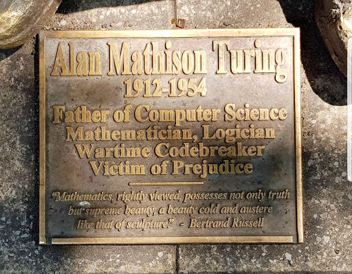 There's a plaque that can be interacted with using a phone or a web browser, which informs visitors a little more about the life and struggles of Mr Turing.