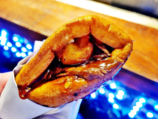Dining Experience @ Christmas Markets. . Operating only in the months of November to December, I was fortunate to be in town when the Christmas Markets were open. . Spread across 9 sites around the city centre, the Manchester Christmas Markets bring all the sights, sounds, and smells of festiveness. . Located at the Cathedral Gardens, the Warm Up At The Winter Bar is a cozy pop-up bar with festive Christmas drinks. . The Cocktail Mulled Wine (GBP £6.50) features a warm medium-thin beverage with fruity sweet sour earthy spice honeyed boozy flavour. This tipple feels and tastes festive, warms the body and soul, and I had great fun exploring the Christmas markets while slowly sipping this. . The Yorkshire Pudding Wraps Pop-Up is a welcoming pop-up stall specialising in a modern handheld treat. The open kitchen and piping hot food catches the eye, while the lovely aroma of grilling draws you in. . The Yorkshire Pudding Wrap (GBP £10) is a hearty and substantial handheld meal. This features a large chewy soft yorkshire pudding, stuffed with tender carrots, juicy peas, chunky pulled beef, soft roasted potatoes, and grainy horseradish and yoghurt spread. . Bite into the warm roll, and you get a burst of bready savoury meaty salty vegetal earthy starchy sweet spice milky flavour. Slightly messy but...