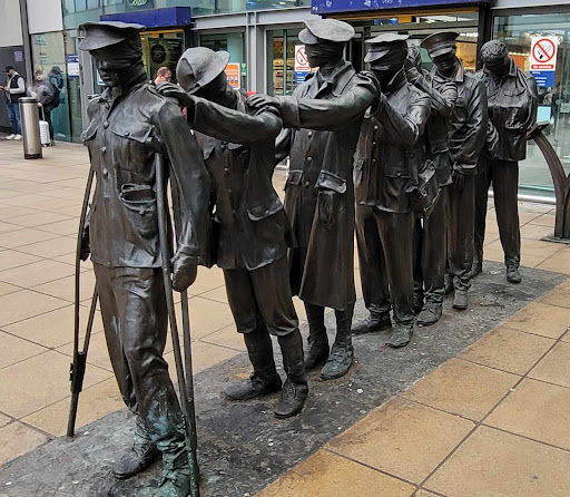 Victory Over Blindness is a bronze sculpture in Manchester, England, by Johanna Domke-Guyot. It is on Piccadilly Approach outside the main entrance of Manchester Piccadilly station and was commissioned to commemorate the centenary of the First World War.