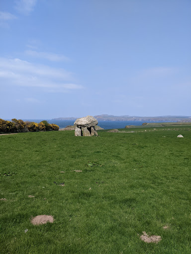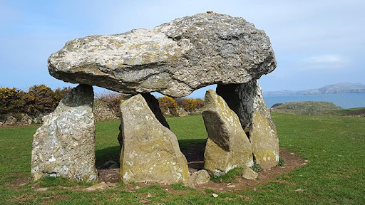 This megalithic monument sits in a meadow overlooking the beautiful Abercastle harbour and the Irish Sea. On a clear day you can see the Preseli Hills and you also have sightline with another monument, nearly 4 miles away, the unique and very jaunty Ffyst Samson.
