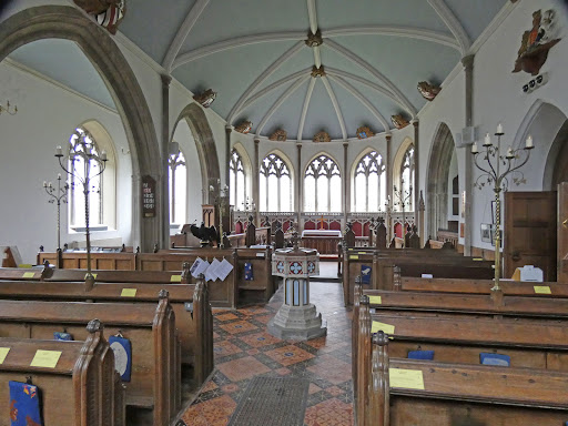 There are lots of other good details, like the painted font, the carved and painted coats-of-arms adorning the vaults in the apse and the nave, and the lovely tiled floor. The cemetery, only a couple of hundred metres away, is the resting place of T. E. Lawrence, and Clouds Hill, Lawrence's home, is only a few kilometres to the north. They are both...