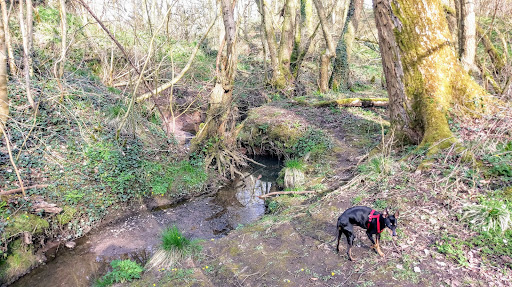 A pleasant surprise to find a secluded nature reserve alongside the industrial area. The name of the reserve comes from the original owner, Richard Parrott (from the 1700’s). "Drumble" is a term used for a Wooded valley with a stream running through it. Once you get past the initial pathway from the entrance with a small parking area (~6 cars), you move quickly away from the buildings and out into open countryside with various tracks. Head for the small opening in the wooden fence with a log laid across the pathway that leads up into the trees. From here there are a small number of routes that lead around and over the main stream (stained red with iron oxides leaching from ancient mines).