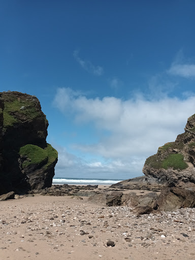 Fantastic beach! One of the best in Cornwall. The path down is very steep but it is 100% worth it. It is dog friendly and great for swimming. The cliffs are unstable so keep at least 50ft away at all times. There are many cool places to climb but would not recommend exploring the caves for safety reasons. It's not busy and a great place to spend a couple of hours. There is room for about 3 cars on the road in front of the path but you can easily park down by Porth Beach and walk about 5 minutes...