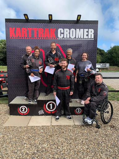 In terms of transferring into the Kart, for the first session, I just got some of my family and some of the staff to lift me in, which worked fine. But having discussed transfer techniques with one of the owners (I didn't catch his name, sorry), during my first session he was busy in his workshop creating a transfer platform that we could try in the second session. In no time, he had built a platform on legs that attaches to the back of the kart that is the same height as my wheelchair. I could then transfer onto this platform, swing my legs around, and then lower myself into the kart seat (with some help from my brother to position my feet as I was lifting). Getting out was simply the reverse. Where I would lift myself onto the platform, swing my feet around, and then transfer back into my wheelchair. This worked so much better, and it was so kind of the owner to sort this out for me. He says that he will further develop the platform to add some padding, so it can be used by others with disabilities to help transfer. They really could not have been more helpful and went out of their way to make it accessable. It was really great to see.