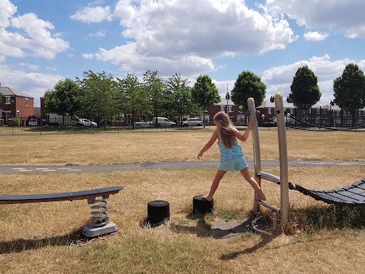 Has a big field but no path to walk all the way around just through one side so no good for a walk. The play area is ok but would be better with astro turf around some of the equipment instead of grass. The benches near the play area are surrounded by broken glass bottles as are a lot of the paths so it's not...