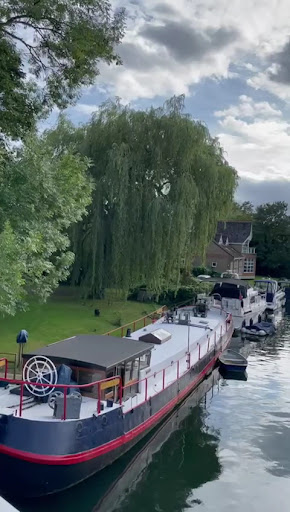 The people along the river bank are all very friendly and just want to have a good time. Lots of people jump from the bridge that goes over the river and there are lots of football matches and sports events in the meadows too. Idyllic place! My picture is the view...