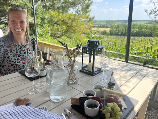My wife and I have been tasting with Simon and Karen, the most wonderfully generous and thoughtful hosts - we had a small (but quite large, delicious and well presented) cheese “nibbles” with them, post tour of the vinyard. The terrace is just a beautiful place to sit on any summers day.