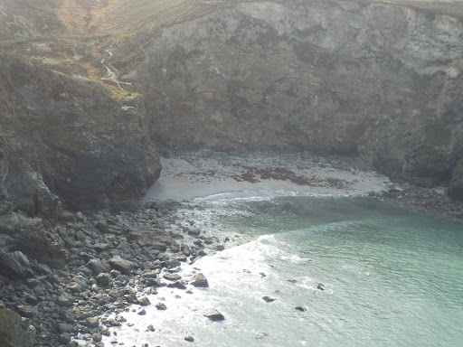An old mine area half of which is located within the MOD site so not accessible but can be seen. Steep steps on both sides so no easy access and can be slippy in the wet. A waterfall can be seen from the coast path on either side as you approach. Not an awful lot to see to be honest, a capped off mine shaft marker and some old buildings, imagination required. I saw a path by the side of the waterfall that seemed to head down towards the beach but I didn't try due to rain and slippy rocks, not sure I would try in the dry to be honest and I'm a bit of an...