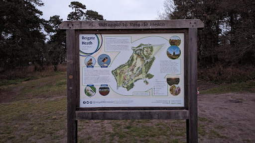A little oasis of calm situated just off the A25, where open heathland meets pine woods. A network of sandy trails crosses the heath, just be aware that some paths take you across the golf course so take care when play is happening. The higher parts of the heath benefit from fine views of the North Downs, and the attractive windmill comes as a nice surprise. The row of charming colourful cottages along the edge of the heath look lovely in the evening sun. There are decent sized free parking areas either side of the road, and an information board at the start of the trail with a map. Popular with dog walkers and a great place to feel close to nature, a short walk from the centre of Reigate where you can find shops and cafés on the very pleasant...