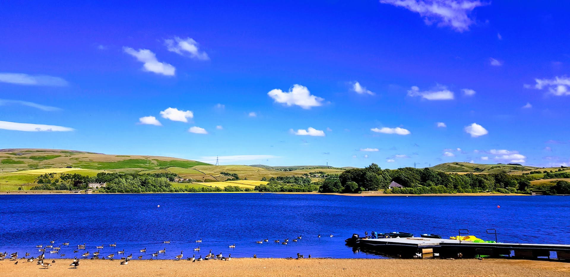 Where can you go that's great within half an hour of Halifax for a good nice walk with a lake plenty of wildlife and a couple of pubs the beach is on site and the Wine press is near the car park. There's a couple of cafes on site two, The Pavilion cafe with outside tables it's on your walk around we did well to pass it this time as we always have a coffee here but today we were to have a Moretti Birra at the wine press I think next time we'll have lunch or dinner. There's a cafe at the carpark visitor centre advertising breakfast sounds good to me. There were loads and loads of birds through many variety with the green head Cuyaga duck catching my eye and a special moment of seeing a great crested grebe dive and the wait I remember from being a little bit younger for it to eventually pop up. As the lake is a fair size with lots of visitors there were a fair few bits of rubbish that had ended up at the side of the lake could do with a few well trained volunteers as it might not be always easy to pick this rubbish from the edges. I'm looking forward to more visits maybe dawn photographs...