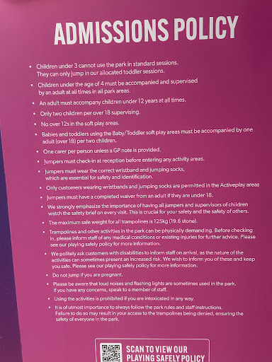 I took a photo of the admissions policy, which clearly states “jumping socks must be worn” — it does not state Oxygen-branded socks. When I challenged this, the manager pointed to the small print buried in the terms & conditions after checkout. That’s not good enough. Who reads the small print?!