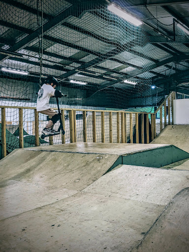 The kids love this place. After all that's what is most important. Would advise checking opening times before going. There's a good sized single level trampoline park, a fun sized mini golf area and an indoor scooter park at the back (it's good to know there are multiple access points for different levels of ability). Make sure you bring a helmet (maybe knee pads and gloves as well). I like the cafe, the coffee is always nice and the menu is varied and well priced. There's plenty of seating and tables throughout the building, there are toilets and parking. It does get cold in the building but that's only if you're sat around which i don't see as a problem because the kids are active and get boiling hot from burning off excess energy. For what that place is, we love it and recommend bringing a big coat, a good book and 💷. I recommend it to anyone looking for something a little bit different, even if you only go once. If your kids are slightly more experienced or confident one hour isn't generally enough. I'd recommend going for...