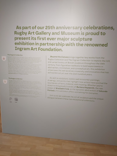 This is a delightfully intriguing and interesting museum and art gallery set in the heart of Rugby. The museum and art gallery is held over three floors with the entrance, shop, cafe and library on the ground floor and then the social history gallery and balcony gallery and on the second floor you have the main art gallery and the archaeology gallery. The balcony gallery on the first floor has some wonderful that look outstanding and amazing on the eye and some interesting constructed ceramic artwork and other small sculpture artwork which is again beautifully displayed, presented and constructed. The social history gallery is absolutely great and shows a list of objects from Rugby over its time and these objects range from plaques, radiation meters, Clocking in Clock, Stocks, Tool Box and an Old Rugby Ball and all of these items are in tremendous condition and are brilliantly displayed. The great thing about the social history it is not bombarded with information displays and there are plenty of objects to see allowing you to focus on the objects themselves and read the information allowing you to know exactly what they are and how they work and from looking at the objects you can get a clear of the history of Rugby and how it has changed over time. The second floor has the archaeology gallery which details information about the Roman Settlement of Tripontium which was only few miles from Rugby and the gallery is laid out like a Roman Market to give you a clear idea of what it would have been like in Roman Times to you a clear idea of Roman Life. The Archeology Gallery details a brief history which is very informative so you can get an idea of the settlement and its significance. There are displays on Roman Fashion and Trade and Food and Farming where you can learn further useful information about the jewellery they wore, the goods they traded and the food they ate giving a full idea of their way of life. In the displays you can see some fantastic artefacts such as jewellery and pottery which are in outstanding condition and wonderfully presented. There is also Roman Coins you can see which are in amazing condition considering their age. There is nice display showing a reconstruction of a bathhouse and why bathing was so important to the Romans. There is also a nice displays about how archaeologists find the artefacts they did in the local from the digs they engaged in, which is fascinating stuff. The main art gallery has some fabulous portraits which have amazing details on them to the point are very life like and also there is some wonderful sculpted art to see, which is exquisite and amazing how it is has been constructed to get to the amazing standard that it is. The great thing about the art gallery is that it is always changing with the wonderful artworks they have on displays throughout the year so it allows you to visit multiple times to see a great variety of artwork and there is an opportunity to look at the artwork and judge it placing it on a piece of paper and putting it in boxes for competitions, which is fun and interesting. The staff are also very friendly and helpful and tell you about the artwork on display. There is a cafe with a wonderful array of food and drink at reasonable prices and alsoa gift shop with a great range of souvenirs at affordable prices. Overall this is a great and amazing place to visit which makes for a pleasant and delightful day out. Well worth whilst...