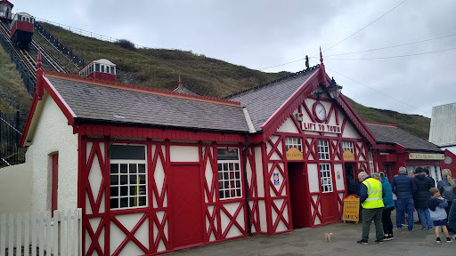 Lovely part of history, as well as being very interesting and unique from an engineering point of view. Saltburn Cliff Lift is a funicular railway providing access to Saltburn Pier and the seafront from the town. The cliff lift is the oldest operating water-balance cliff lift in the United Kingdom. It was constructed between 1883 and 1884 to replace a vertical cliff hoist and improve access for tourists to the seafront and beach. The cliff lift has a height of 120 feet and a track length of 207 feet, resulting 71 per cent incline. A pair of 12-person cars, each fitted with a 240-imperial-gallon water tank, run on parallel standard gauge tracks; by removing or adding the water to their tanks, movement is achieved, regulated by a brakeman at the top. The lift opened in June 1884. The original cars have been replaced With aluminium counterparts and the top station restored, but little of the underlying mechanism has been changed since it was installed. The lift remains in regular use between March and October each year. It is one of Saltburn's most popular tourist...