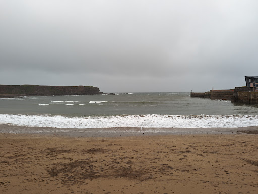 Read moreThis review has been done on a bank holiday in April. It is raining in a way it only can in Scotland: sideways. With a cold wind. Damp and cold I could see that there is a sandy beach. But the sky is grey and waves look angry. The beach was being used to exercise dogs. There are some toilets at a nearby car park. We found one coffee shop open but wouldn't let us in as they were "at capacity." The ice cream parlour was open, and despite a wind chill factor of -273c people were buying ice creams. They served us some delicious hot chocolates with cream and marshmallows. I couldn't make out much more in the beach due to the hah. If we get a dry day I might update this. But this is Scotland in the Spring, so I don't hold out much hope. Updated the next day. An overcast forecast turned into a sunny day. I can report seals in the harbour and quiet a pleasant sandy beach with some rock pools for young explorers. But I would recommend checking on the sea quality websites before venturing...