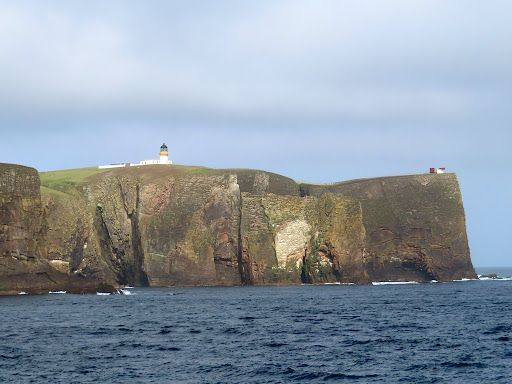 Fair Isle North Lighthouse (1892) stands on a promontory at the north end of Fair Isle between the Orkney and Shetland islands, Scotland. The 65-meter cliffs allow the light be be seen 41...