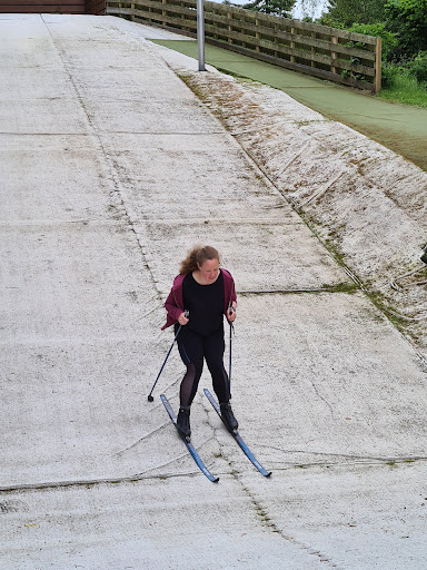 So, though we missed the snow the centre is equipped to train you the basics of cross country skiing on a dry ski slope and specialist carpeted flat training areas; and roller skies for the more experienced. We undertook the Adult beginners class.
