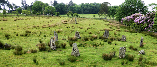 Further along the field, a group of 9 granite stones of varying sizes, in a circle of 12m diameter.