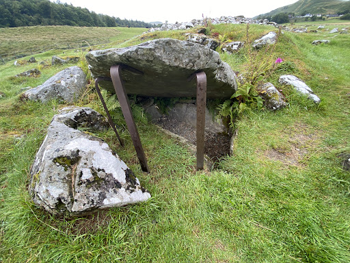 The third cairn in the monument walk. This has an open cist at the side of the cairn giving an idea of how people were buried in the cairns. Story board, and all three cairns visible from here. Impressive view. More sites available further along from here. If you don't fancy walking any further, use the Lady Glassey Wood car park to...