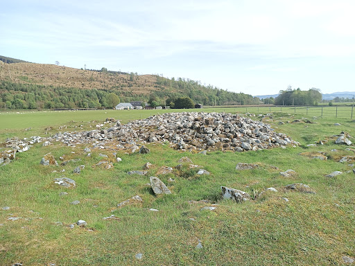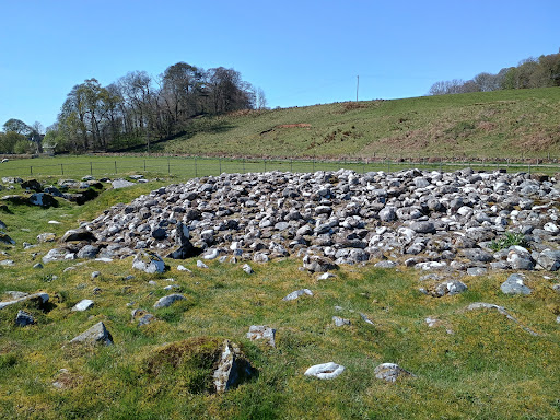 Ce Cairn est bien plus grand qu'il ne paraît. Sa taille est en fait celle de l'entourage de barrière, les pierres commencent sous la barrière et toute la partie herbeuse sur laquelle on marche est en fait sur des pierres.