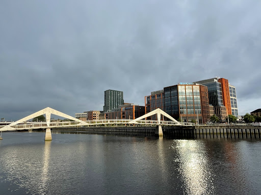 Spanning the Clyde it allows access to the beautifully curated financial district and Barclays embankment with lovely landscaping and flower beds.