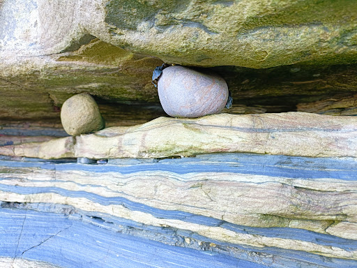 Know that the sandstone rock forming beneath your feet layer upon tiny layer is also eroding with each tide against the cliff. The moon pulls against the earth's seas as we spin around the sun. Our lifespans hardly meriting a single frame in these geologic processes.