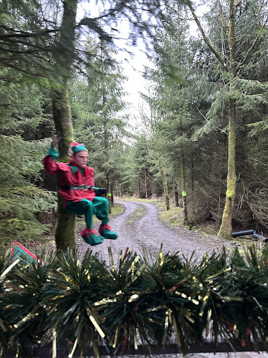 They were running supposedly 15mins late which turned out to be closer to 30 mins late. You were bundled onto the trailer where the driver put his foot down in the tractor and the trailer was going very fast. We whizzed thru the 'woods' with the Elf talking so fast and us speeding past ghe elfs in ghe woods it was just too quick for the children.