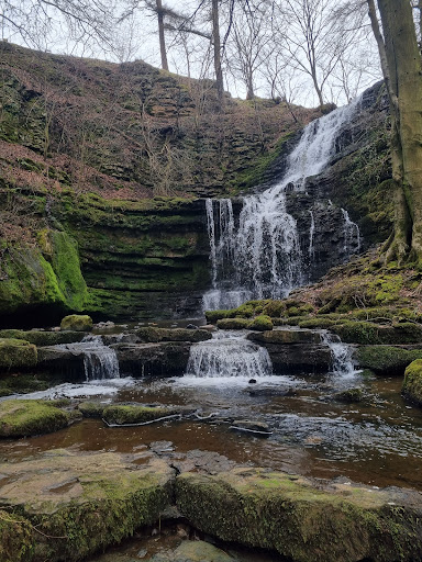 Read moreLovely, tall waterfall. We parked on the side of the road (6ish spaces by the waterfall and a few more just past the waterfall) and took the 5-minute walk down. It's steep down, not too muddy. We went the day after it rained, and it was slippy in places, but still a decent walk, we were wearing vans shoes. You can walk halfway down and along to stand at the bottom of the main waterfall, or you can walk all the way down and stand at the 2nd part of the waterfall where you can see the whole waterfall area. You can continue to walk down the stream from here, too. You can also stand at the top of the waterfall. Abount a minute walk along the wall separating you from the road, and you can see the stream come through under the bridge, and on to the top of the waterfall...