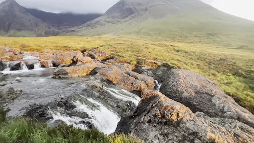 Read moreAt the foot of the Black Cuillins near Glenbrittle you will find the Fairy Pools, with their absolutely crystal-clear pools on the River Brittle. These now-famous pools have welcomed people from all over the world. Plus, if you are feeling that way inclined, they make for some great ‘Wild Swimming’ ‘IF’ you are brave enough to enter the cold water. For those of us that are er . . . less adventurous the magical Fairy Pools offer the opportunity for some incredible photos. The walk up to the pools is the same route there and back. The complete return distance to the first main waterfall and pool is 2.4km, and it’ll take about 40 (ish) minutes to complete the walk (but that’s with no stops . . . . and you will stop !!). The last time we were there we spent most of the morning and into early lunch. After you hit the first waterfall, photos take over, ( or swimming . . . . brave souls !!) at all the different pools on the way. It has been upgraded since we visited, the path is easier to walk they’ve put in little bridges where you had to traverse burns ( streams) over big rocks and boulders, which in my opinion was far more exciting than just walking up a tourist attraction. However, there were some injuries doing it the “old way” so I suppose it’s safer now. So don’t let that dissuade you, regardless of how you get there, and whether you’re wild swimming or not, ( I did some ‘wild paddling’ and that was enough for me !!) it is definitely one of the places to check off your list on Skye. Yes, there is a charge for the car park, but that’s why you have toilets, the ‘better path’, the bridges, and there is talk of a café at some point. So you know your money is going to good use, and not just for parking your car !