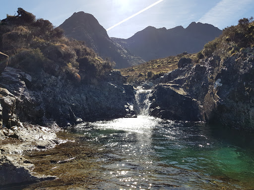 Read moreLovely place to visit. We visited the Fairy Pools early season (April / May?) last year and the narrow roads leading to the location were terrible - full of potholes and crumbling sides. On the way back I had to help to push a car out of a bog after it slid off the road. To be fair most of the roads on Skye were atrocious and during our 4 day visit we saw at least 5 cars with blown tyres or broken suspension due to the potholes. After surviving the roads this time we visited the Fairy Pools there was a properly made car park which made the world of difference compared to the shambles of the 'parking' arrangements which were previously in place (and were non existent). I have seen some reviews complaining about the price to park and the long walk to get to the upper part of the valley where the pools are but consider the following: 1 - The car parks were constructed using local money and the proceeds go to developing more infrastructure for tourists. They were not funded by local or national government. Paying for parking directly helps the local community and funds projects to benefit tourists (of which there are many). The money paid to park is not being swallowed into the fecal black hole of 'government'. 2 - The walk to the head of the valley could be impossible for some with debilitating ailments or limited mobility but when has anything which is worthwhile visiting been 5 yards from a car park? When we visited the weather was perfect (see pictures) and even though the temperature was not exactly supporting the global warming narrative there were people swimming in the stream and they seemed to love it. This was truly one of the highlights of our most recent visit to Skye and it was a great way to spend...
