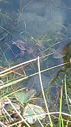A lovely little nature reserve at the end of a residential street, so parking is limited. A pond and small area of woodland. Quite aa lot of steps.There are no bins so all litter needs to be carried with you and taken home. We picked up a few bits on our way round. There is a pond with frogs, toads, small fish, moorhens and ducks. There is a walk that goes around the water, some areas are wooden walkways. It was very muddy to the far left as you come in via the end of street. To the right the path takes you up high. There is a drop off, so small children will need to be supervised both at the waters edge and on the higher path. The far side shares a boundary with a sheep field. It was a lovely circular walk that my 2 and 4 year old kids enjoyed. There was a den at the top that they loved exploring. Lots...