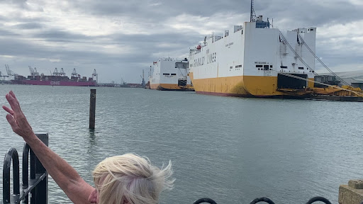 Mayflower Park is a very nice park on the eastern bank of the River Test. It is located between the passenger and cargo terminals of the Port of Southampton, and is near the confluence of the rivers Test and Itchen (which together form Southampton Water, which the drains into the Solent in front of the Isle of Wight, and then into the English Channel).