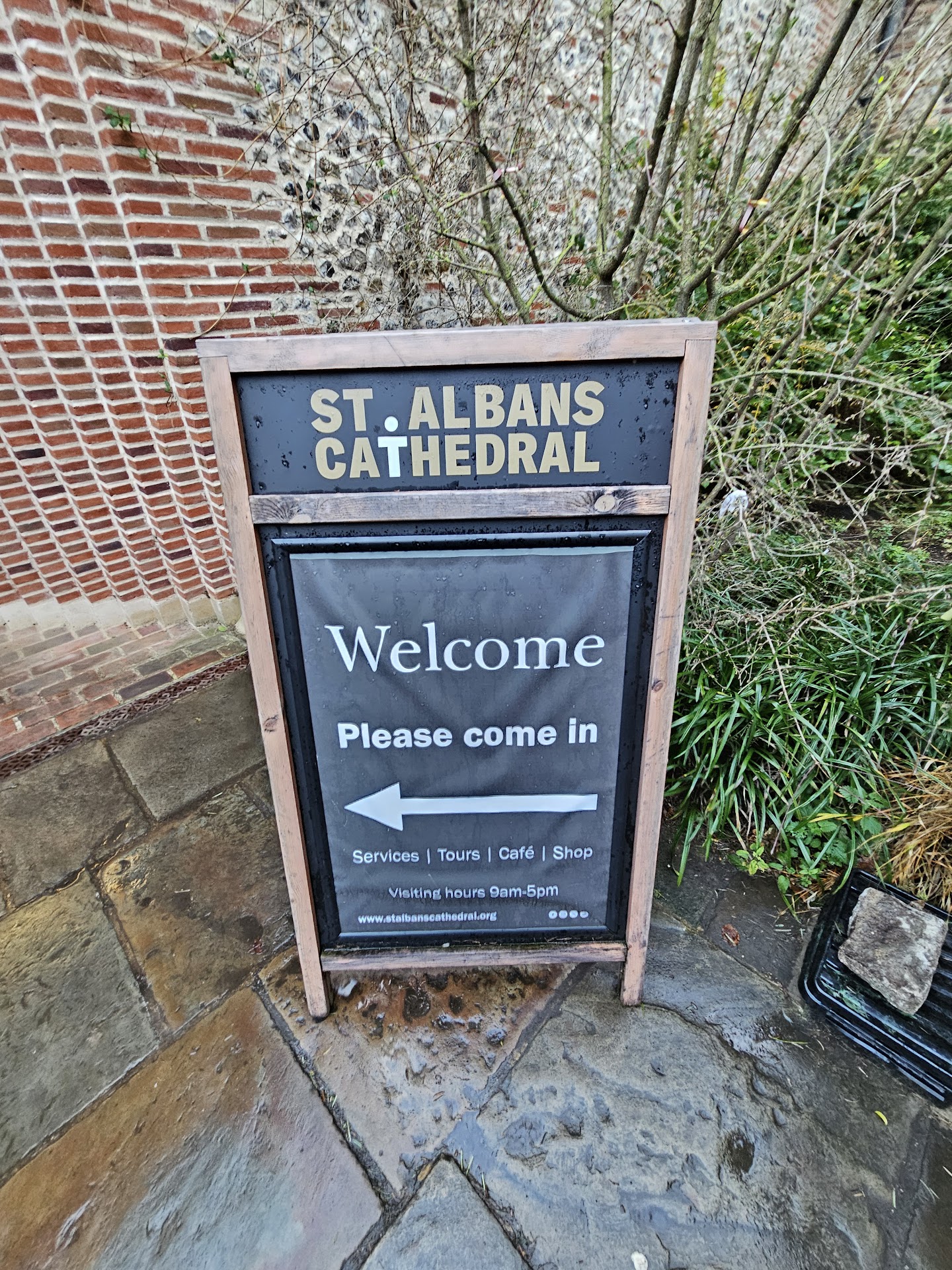 As we embarked on the final leg of our walk from the Sopwell Valley, we found ourselves climbing a hill towards the city proper. Tucked away off the main road, the cathedral is an unmistakable landmark, drawing a steady stream of tourists. The entrance was bustling with activity, yet the serene gardens and meticulously maintained graveyard outside offered a peaceful retreat. A magnificent, ancient tree stood proudly near the entrance, adding to the site’s historical charm.