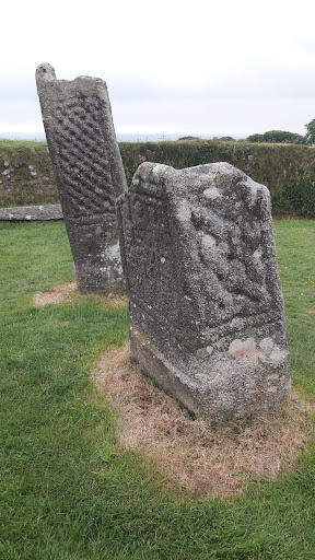 Next to the Doniert Stone is another Celtic decorated base called The Other Half Stone. It was also designed to support a granite cross. The front panel is carved with an eight-cord plait. The two side panels have no decoration. It is not known if this cross was ever finished.