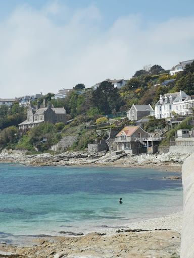 Beautiful cornish beach with clear enticing blue/green waters & gorgeous surroundings. Car park & toilets up from beach make it suitable for young families with littlies to tend to. Nearby hotels overlooking beach make it an ideal weekend get away or if a day out, simply having lunch out for a treat - recommend the "Idle Rocks" with outside veranda area & superb views (a must if love seafood😉). Equally lovely with delicious food & superb friendly staff is the "Rising Sun".