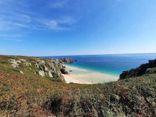 Read moreJuly 2018. Without a doubt this is one if the most amazing,beautiful and outstanding beaches you will come across in Cornwall,having lived in Cornwall for a very long time I've came across many beautiful beaches and coves around the peninsula like kynance Cove,porthcurno etc ect but this one really does tick all the boxes. Park at Treen car park which is £2 all day...(ticket machine hidden besides toilets next to the shop)... if you park here then its a 15 minute beautiful coastal walk down to this beach, if you follow the lane up which is opposite the little shop right up till you reach the metal gate then turn left and follow down till you reach a cross path with a national trust rock...don't turn right here as that will take you to porthcurno..instead follow straight forward as if you were heading down hill with the national trust sign on your left from here it's quite a steep decent down so have good walking trainers on. When you hit the end there is a near on vertical climb/bum shuffle over rocks and boulders (you will proberly look at it from this point as being near on impossible but believe me it's doable) just take a 5 minute break and look at footings as to how to get down and you'll be fine it can be done for the able no but not recommended for the elderly or very young children altho I've seen disabled,young and elderly down here I would still not recommend the last part of the climb down but if you feel you can do it then its well worth it,we took our 3 year old and two teenagers down here but only because we felt they were able and was done in a safe controlled manner. When your down there you'll feel like your in paradise it really is a hidden gem here which if your able you'll be pleasantly surprised by....please be aware that that this has always been known a renowned nudist beach location so don't be shocked if you get an eyeful just respect each Other and enjoy your break,most of the time you'll find more people fully covered in swim wear but just be prepared if visiting this cove. Best time to visit is at low tide only reason I say this is because there is an island of sand which you can walk or swim out to and when on it you feel like your standing in the middle of the ocean and being this shallow is great with younger children (if able to get down safely).. but even at high tide is stunning and great fun beach. High tide does not cover this beach so is safe to be at during both high and low tide but please still respect the water and stay safe oh...