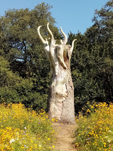 A wonderful walk around the Serpentine Park designed by Capability Brown in the 1750's. Paths leading away from the lake to maze and playareas. On the far side from the main entrance is the stage with it's back to the lake. Love walking past it with music playing drifting towards you on the air. Dappled wooded pathway with magnificent sculptures along the way. Including a mahoosive living willow dragon tunnel, a nest of equally mahoosive dragon eggs, giant mushrooms, metal fairy folk, mahoosive dandelion clocks, running deer, and tree sculptures of owls and otters, all wondrous to behold. The undertree planting schemes are a feast for the eyes in blues and whites. Half way round is a café with boat trip jetty. Unfortunately the boat has always been full when I have got there. As would be good to see the gardens from a different perspective. Large swathes of sun drenched wild meadow plantings, and a wee miniature train ride. And bird hides. At the other end of the lake is an amazing bronze statue of Perseus holding the decapitated head of Medusa by the 16th century artist Benvenuta Cellini ; one of the biggest bronzes in the UK. Behind which lay the Italian Garden with it's multiple fountains and it's trellis walk with a marble statue of Hygeia Goddess of health and hygiene. And the tall border plantings of...