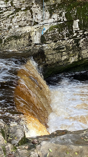 Read moreWhat a fantastic spot. An accidental find during our stay in the Yorkshire dales. Bit tricky to park. There is a small pay and display carpark with toilets. But the carpark was full. Did manage to park on the outskirts of the village without being in anyone’s way. Couple of minutes walk to the falls. Had been a bit wet so the walk across the field near the fall was tricky as I only had trainers on. But it was so worth it. October time is when the salmon head back up stream to spawn. What a spectacular sight it was. Difficult to photograph but managed a few shots. Even if the salmon had not been there it’s worth a visit. Lots of lovely walks about. Get ur walking shoes on. Bring a lunch. Make a day of this...