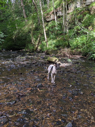 Quite a few people we met had dogs - the vast majority of which were perfectly well behaved, tail wagging and friendly. The exception being a couple of youngish women whose dogs were off leash and the first we noticed of them was when they brushed passed us in a narrow part of the track quite a way up from the Causey Beck with a steep bank - children or frailer folk than us might have been more than a little discomfited than we were.