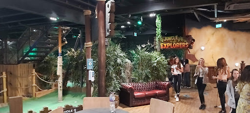 This was the first time me and my friend have been to this venue. We visited on a Saturday about 7 40pm although a weekend was not busy. There are two courses you can play ocean and jungle. We went for the jungle because we were told was a harder course then ocean. The course was fun, took around an hour to complete. The jungle course does have stairs to get up to the top level from hole 10. Your play about 4 more holes where you ball will be carried to the lower floor where you meet it on the lower level again. All in all was fun, would be good for groups. If you like selfies theres a photo frame where the staff were happy to take me and my friends photo. The only two nit picks I had, were the ladies toilets are small two loos in a small room. One toilet seemed to be out of order as the door was locked for ages and the other toilet was dirty. The drinks also are very over priced for what they should be, for example two smirnoff ice bottles cost £8 a little over priced. Other then that all good fun on...