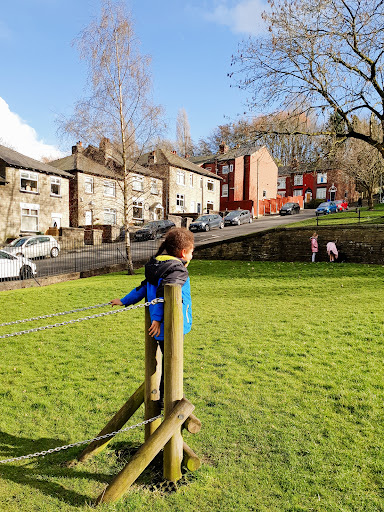 The park makes the most of its hilly terrain with a series of large slides dotted around the park. At the bottom of the hill you can find a large football pitch, along with a small children's play area. At the top, a wide path and benches linking the back roads of Edgeley to the main road towards Central Stockport.