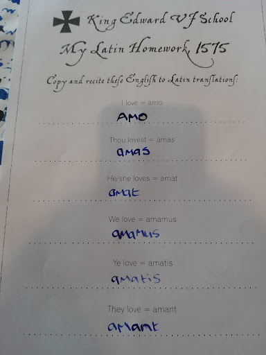 We were well invested by this time in the benefit of joining a tour and found ourselves ushered once again upstairs into the old school classrooms and were treated to a great historical display of life in school during Shakespearean times. This really was the best part of the experience and the presenter / actor was fantastic and so enthusiastic and knowledgeable about the building and general life during those times.