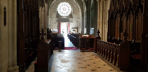 Lovely church. Usually admire this from the outside but today it was open. Wow!! Fantastic stained glass windows all around. High vaulted ceiling and very tall church tower. Head inside to the alter and to the left...