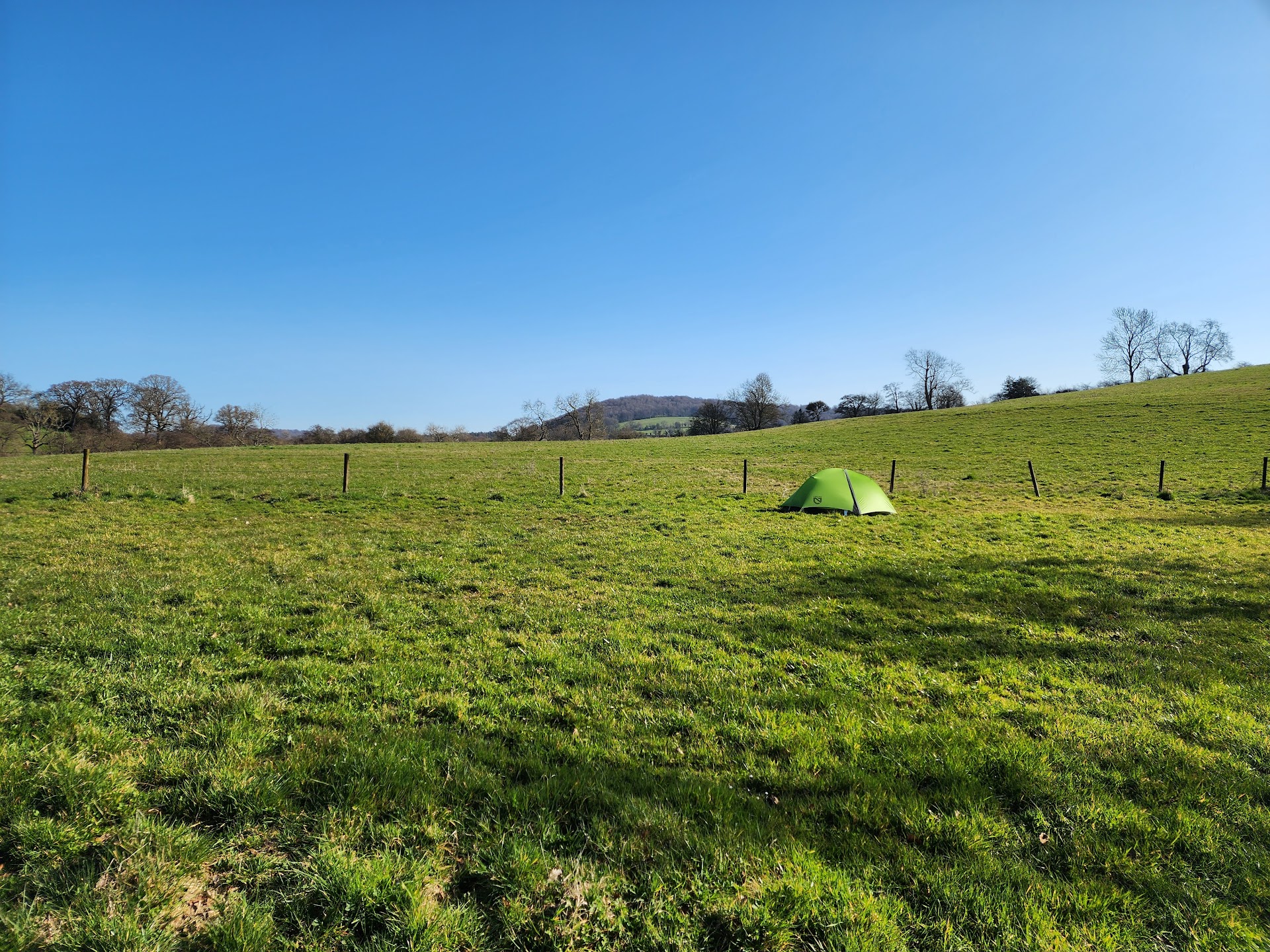 My wife and I recently hiked the Cotswold Way, and we stayed here on the third night of our hike. We booked a tent pitch.