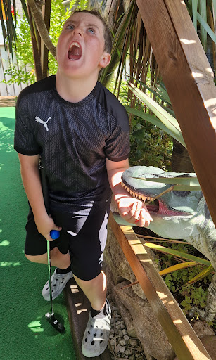 Read moreSanta-Fe Fun Park overlooks the seafront and gives you a choice of two crazy golf courses, one pirate themed and one dinosaur themed. We opted for the dinosaurs. A number of the larger and best known species are represented in the models, some of which are animatronic. The course is hard enough to be interesting but not so difficult that a child can't enjoy playing. It is however very compact in its layout so that you can sometimes feel quite crowded by people on the holes ahead and behind. Overall however it provides about an hour of pleasant, light entertainment. There is a bar adjacent to the courses where you can sit in the sun and enjoy a drink but I can give no further information as we didn't...