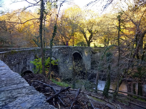 Small single track bridge with passing places for walkers when horse and carts passed in ancient times. This has been off my radar for 40 years, but having driven over it recently I was reminded of the jumps we made into the water some 8-10 metres below, on a cold, wet miserable January day in 1983. This was to clean the muddy coveralls we used for potholing as part of our basic training in the Junior Leaders Regiment, Royal Armoured Corps. I was so cold and shocked after hitting the water that I couldn't recite my name, rank and number! The river Dart is a beautiful beast, but you'll need to actually walk in the nearby woods as there are no river walks from the bridge. Disappointing really as...