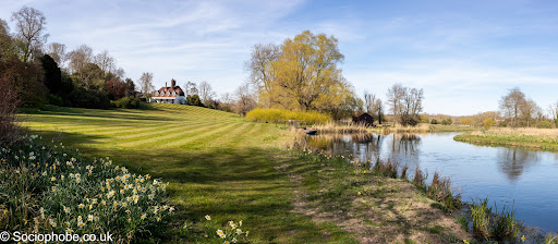 It was delightful sitting outside in Houghton Lodge's walled garden, enjoy the sun and the silence. As we were guests (we stayed in the on-site Apple Rooms) we didn't need to rush as we had access to the walled garden after opening hours. After coffee we walked through the formal garden and onto the lawns. These have always been my favourite feature of Houghton Lodge on every visit, the lines of the lawn cutting leading the eye towards the sculpted silhouette of the house. This visit just reinforced that impression, helped by a bed of daffodils in the foreground. We crossed the river to look at the llamas and sheep and then some moorhens (maybe?) before revisiting the walled garden. The apple blossom was superb and there were obviously some very old varieties planted there. I then spent an inordinate amount of time watching a bee work his way through a bunch of bluebells before we visited the orchid house. This, as the name suggests, had a variety of orchids in and was lovely and warm! At 9 the next morning I decided to go for a walk down to the river and see the sheep and swans. The light was totally different compared to the previous evening so I took my time and ambled around before getting back to the gardens at 10 to see the front of the house illuminated in the morning sun. I still haven't worked out if there's anywhere to get a picture of the house reflected in the...